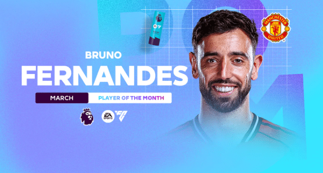 Bruno Fernandes has been named EA SPORTS Premier League Player of the Month for March, equalling Cristiano Ronaldo’s record of six career wins.