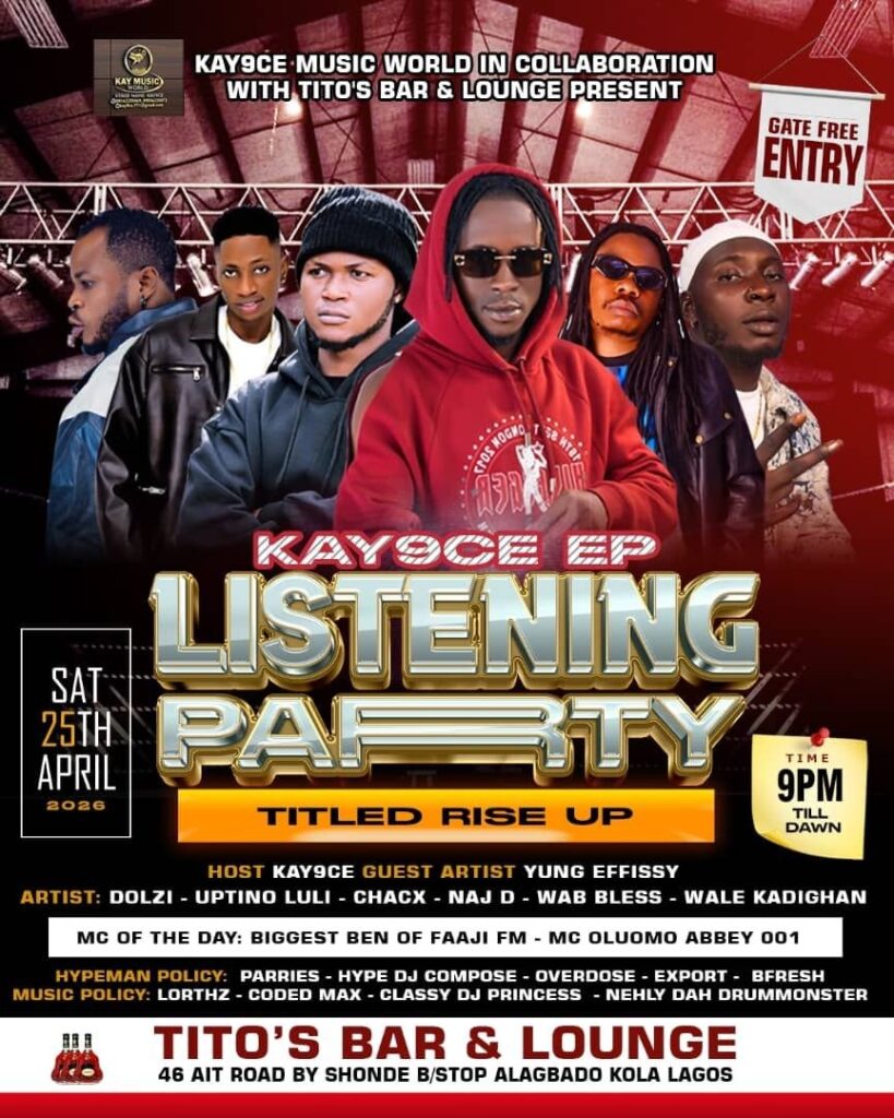 The “Rise Up” EP listening party will feature live performances from multiple talented artistes, creating a vibrant atmosphere for fans, industry stakeholders, and music lovers. Attendees will have the first opportunity to experience Kay9ce’s new body of work, which reflects growth, resilience, and a powerful message of elevation.