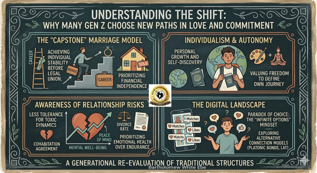 * The “Divorce Generation” Influence: Having grown up watching the high divorce rates of previous generations, many Gen Zers are hyper-aware of the risks. This leads to “safety-first” dating—taking much longer to commit or avoiding legal marriage to prevent a messy exit later.